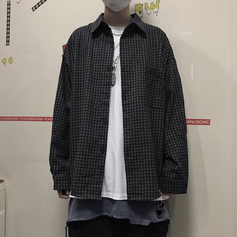 2020年春バージョンins原宿風レトロ黒チェック柄長袖シャツルーズシャツジャケット男女兼用 Brother_is_Style3923094
