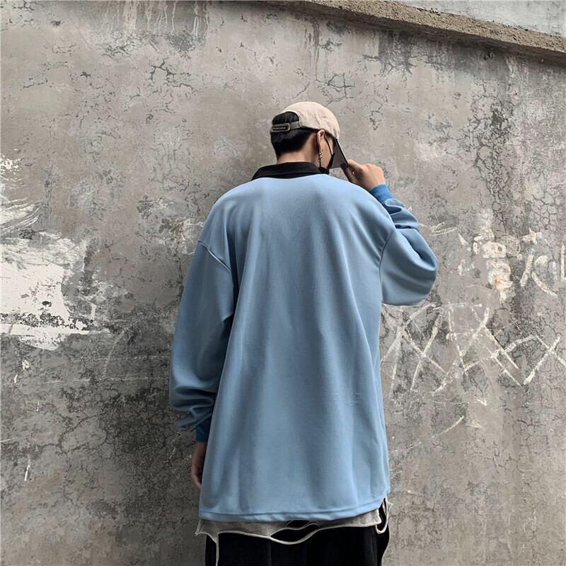 2020年春新作ins原宿風カラーマッチングポロトップカップルゆったり長袖セーター男女トレンド Brother_is_Style6554881