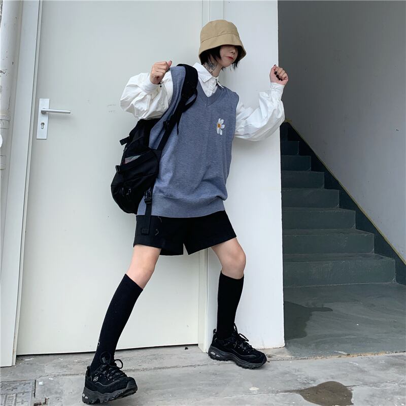 2020年夏新作イン原宿風ニットVネックセーターベストゆったりアウターウェアジャケットコート女性潮 Brother_is_Style7879953