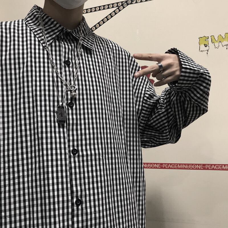 スプリングサマースタイルスタンダードブラックホワイト格子柄シャツ ルーズジャケット レディース レトロ かわいい 春物 夏物 Brother_is_Style4018753