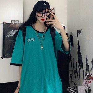 レイクブルー半袖女性2020新しい夏のインシンプルな文字刺繍トップス緩い野生のTシャツの潮 Brother_is_Style4499527