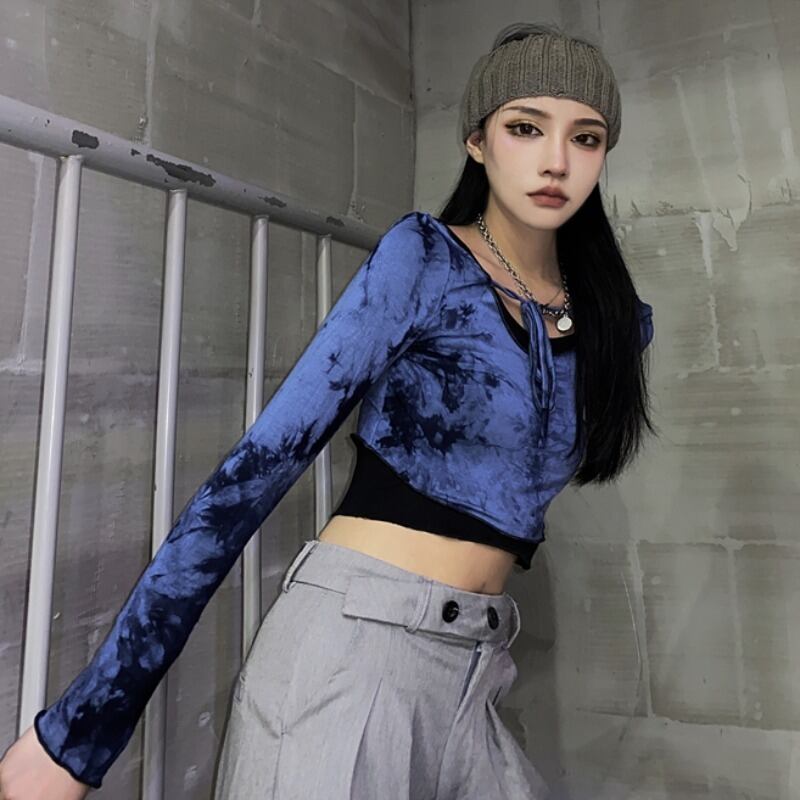 2020年秋の新女性版insワイルドタイダイショートクロップトップスリム学生長袖Tシャツトレンド Brother_is_Style60302678995