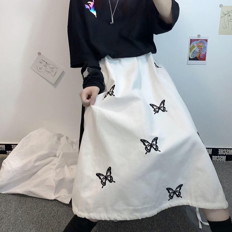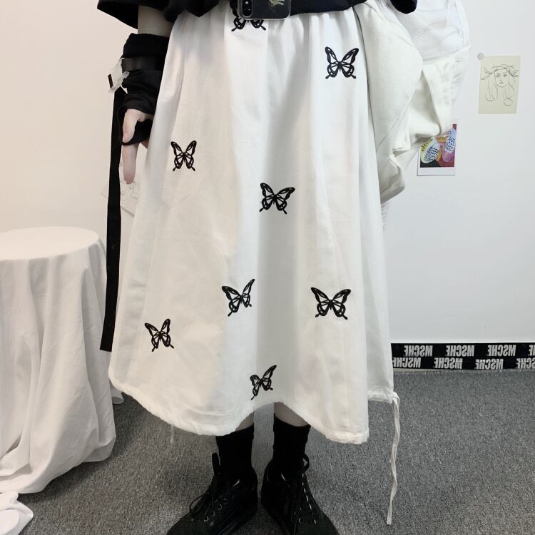 スカートレディース2020新夏バージョンインスバタフライ刺繍ホワイトスカートミドル丈ハイウエストAラインスカートトレンド Brother_is_Style2574135