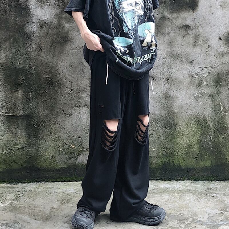 パンツ女性版ins通り穴ストレートパンツゆったりハイウエストワイドレッグパンツ学生カジュアルパンツカップル潮 Brother_is_Style3636050