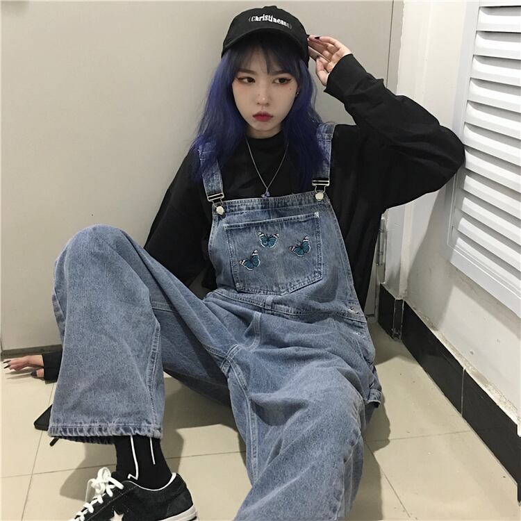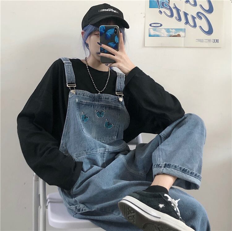 パンツレディース2020新作バージョンレトロストレートパンツ蝶刺繍オーバーオールゆったりジーンズトレンド Brother_is_Style37363528831