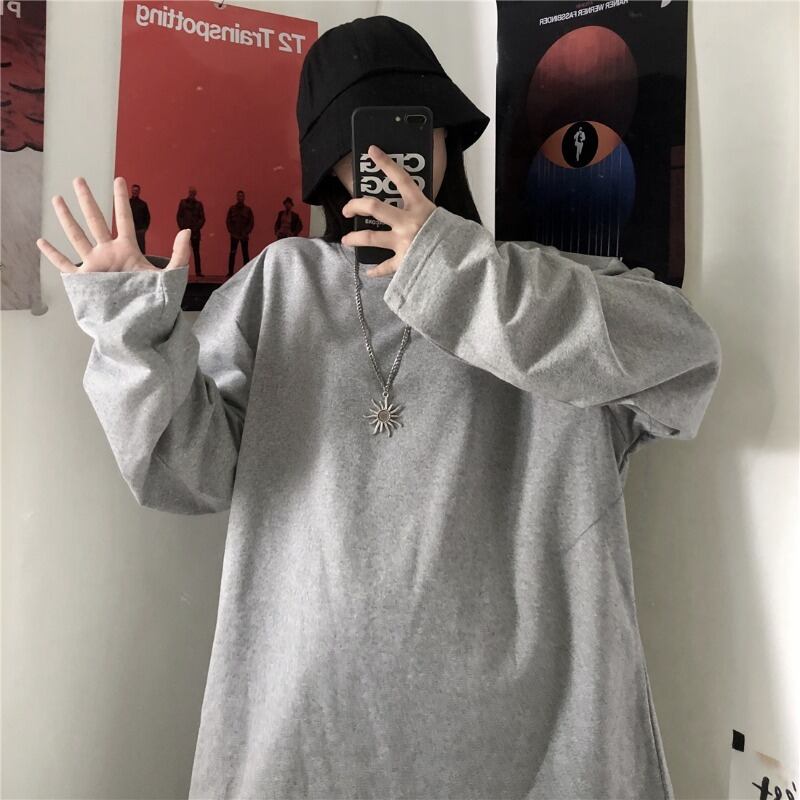 2020新しい秋バージョンins原宿ポートスタイル白い底入れシャツトップス緩い無地長袖Tシャツ女性のトレンド Brother_is_Style0130066