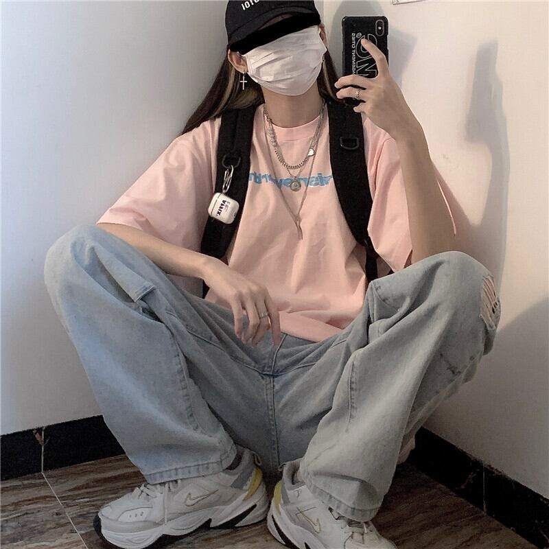 薄ピンクの半袖トップ2020新しい夏バージョンins緩い手紙印刷学生半袖Tシャツ女性のトレンド Brother_is_Style5271835