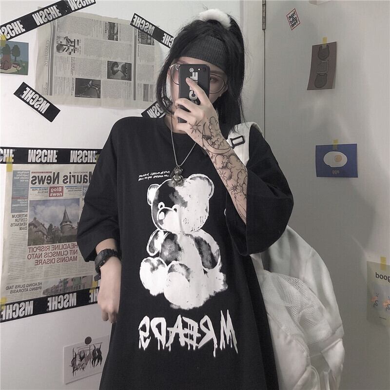 2020新しい夏バージョンinsレトロなクマ白の半袖トップス緩いネット赤半袖Tシャツ女性の潮 Brother_is_Style3812774