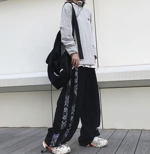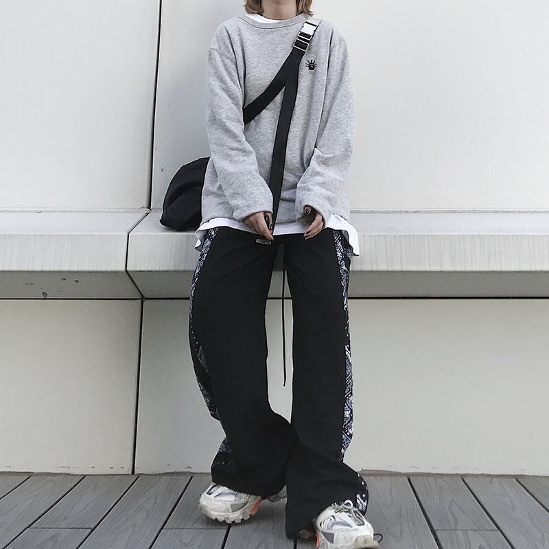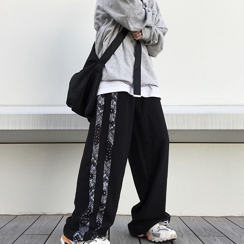 パンツレディース2020新バージョンinsレトロステッチスポーツパンツルーズストレートパンツハイウエストカジュアルパンツトレンド Brother_is_Style50797891395