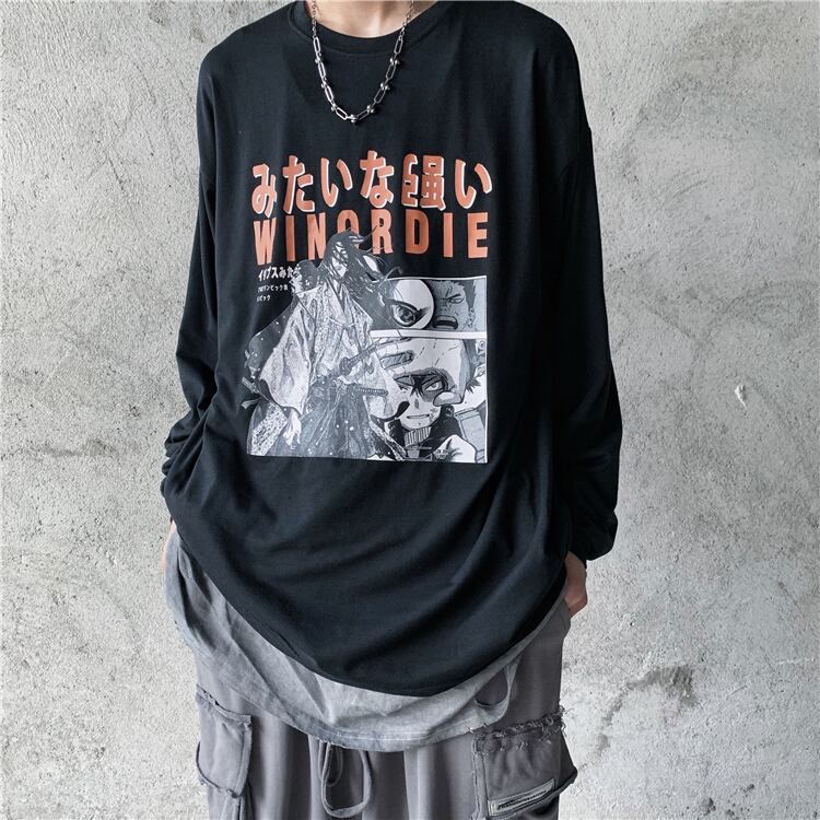 2020年秋新作insストリートアニメレタープリントブラックトップルーズ長袖Tシャツ男女 Brother_is_Style3167199