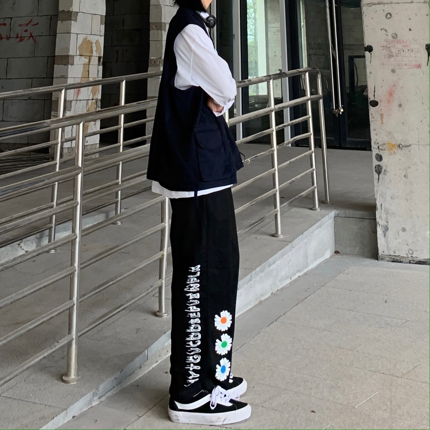 パンツバージョンのinsレトロデイジー個性プリントストレートワイドレッグパンツルーズハイウエストカジュアルパンツ男性と女性 Brother_is_Style8395903