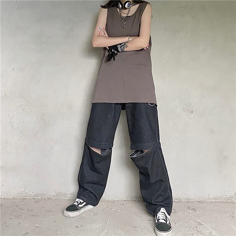 ジーンズ女性版insレトロ野生取り外し可能なストレートレッグパンツ緩いハイウエストオールドパンツワイドレッグパンツ潮 Brother_is_Style9913506