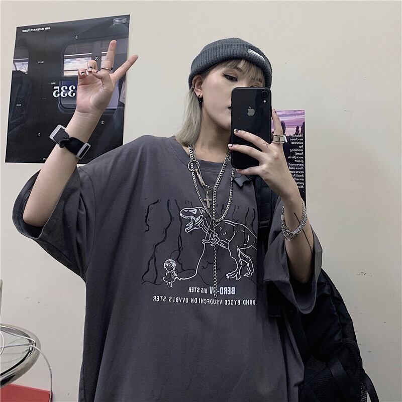 女性の2020年夏バージョンins原宿スタイルレトロ漫画印刷カップル緩い半袖Tシャツトップトレンド Brother_is_Style0763589