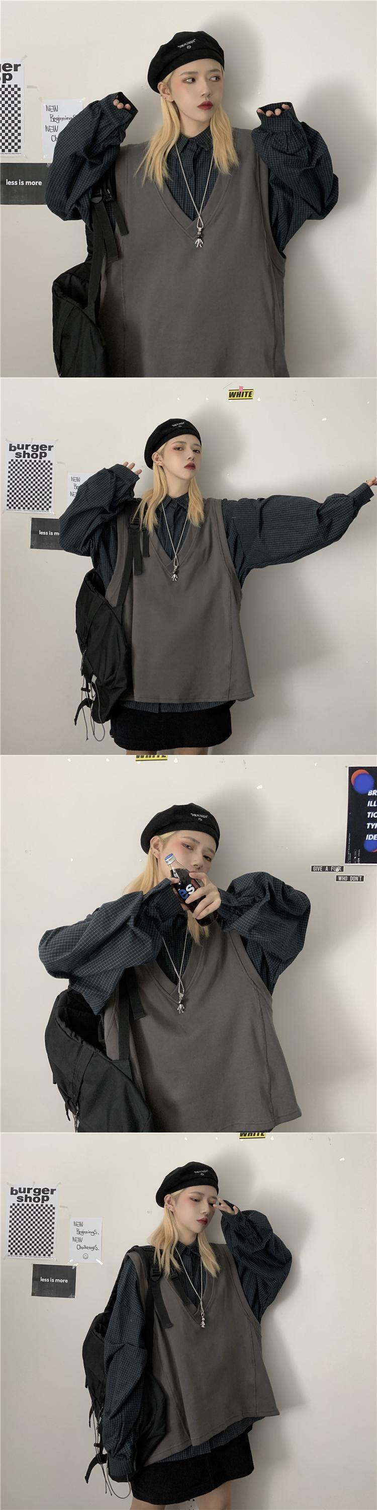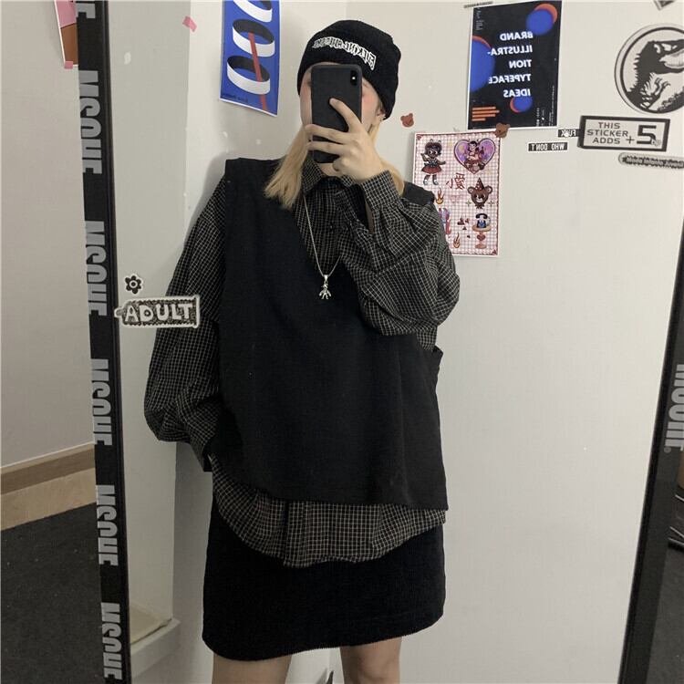色:黒のベスト,グレーのベスト,黒のチェック柄シャツ,ブルーチェックシャツ