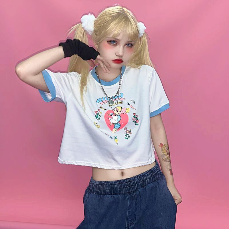 2020新しい夏バージョンinsヒットカラー漫画アンビリカルショートトップルーズホワイト半袖Tシャツの女性のトレンド Brother_is_Style5721714