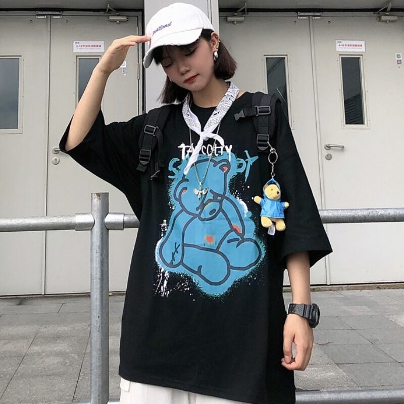 2020年夏の新バージョンinsレトロベアプリントトップスルーズブラックネットレッド半袖Tシャツ女性の潮 Brother_is_Style4755896