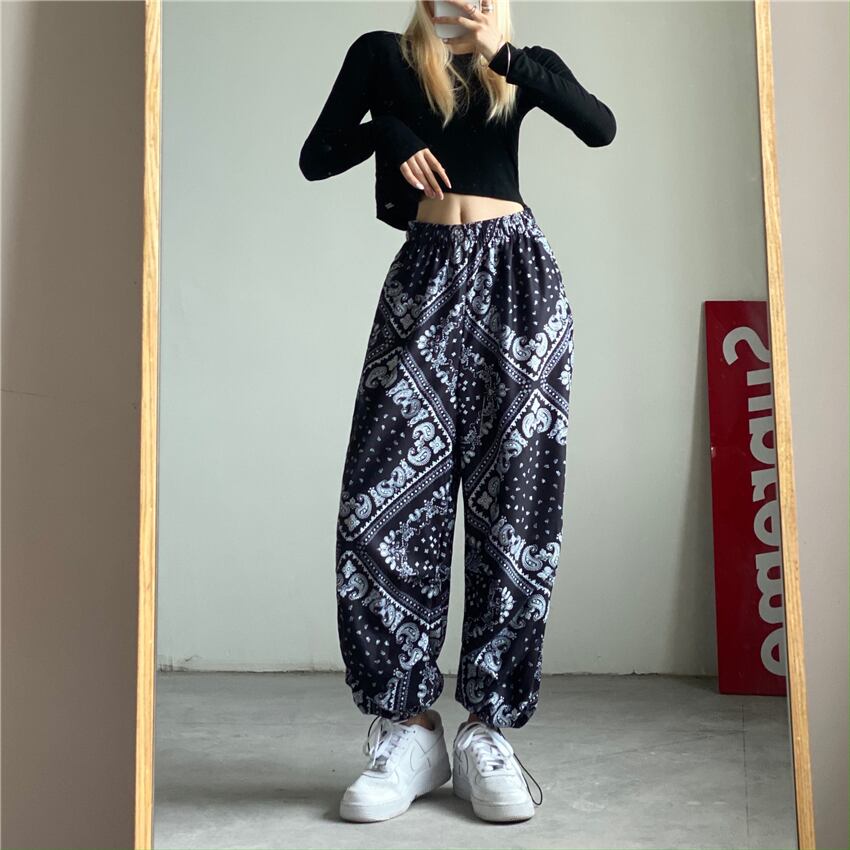 パンツ女性版insストリートカシュープリントブーケ足パンツ緩いハイウエストモップズボンストレートワイドレッグパンツトレンド Brother_is_Style49922120740