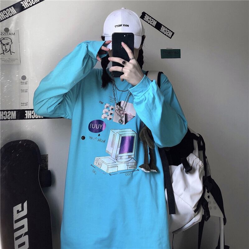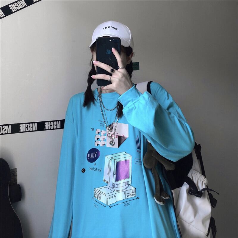 2020年秋のins原宿スタイルのレトロなコンピュータの印刷の緩い野生の長袖のTシャツの女性のトレンドの新しいバージョン Brother_is_Style27642776334