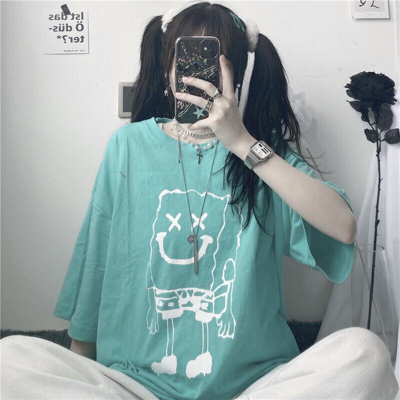 ネット赤湖青半袖女性2020新しい夏バージョンins緩い香港スタイルの学生漫画のTシャツトップ潮 Brother_is_Style3599338