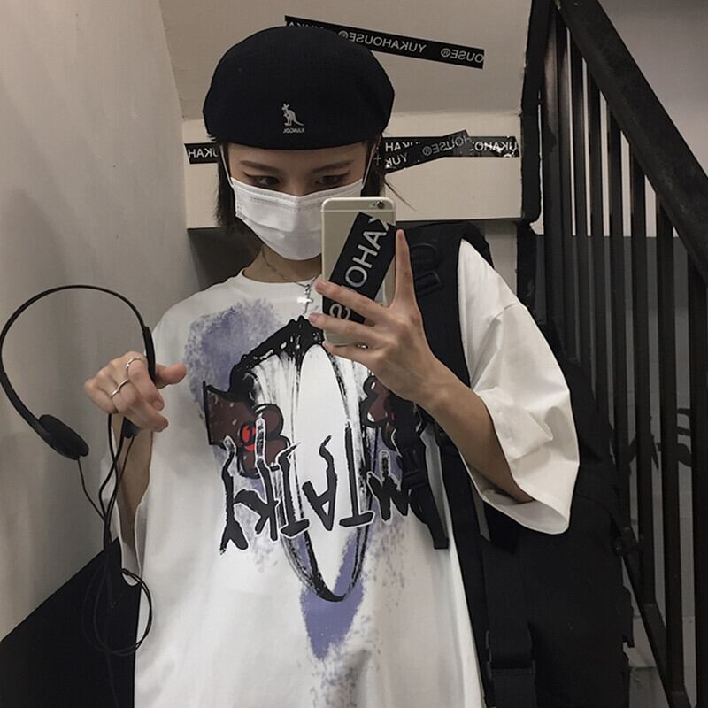 イン版原宿風ストリートヒップホップレトログラフィティ半袖トップスカップル緩い半袖Tシャツ女性の潮の夏バージョン Brother_is_Style5095175
