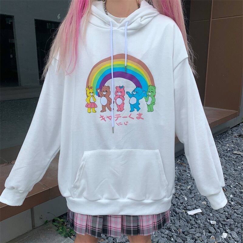 フード付きセーター女性の秋の服2020新しいバージョンinsレインボーベアプリント緩やかなヘッジ長袖トップトレンド Brother_is_Style70856436877