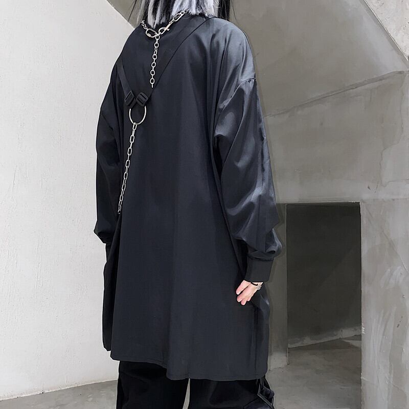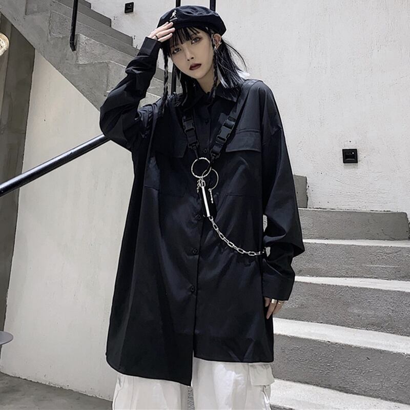 シャツ女性バージョンinsレトロな不規則なツーリングシャツルーズブラックスクエアカラートップ+リストアクセサリー女性の潮 Brother_is_Style3606831