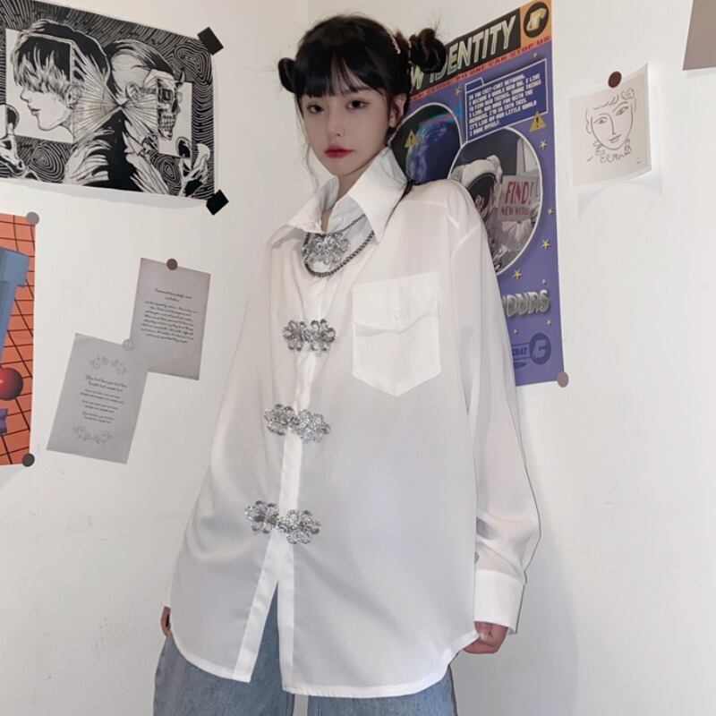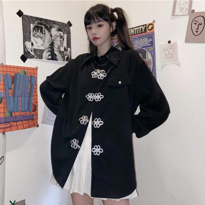 インレトロニッチデザイン長袖シャツルーズワイルドブラックシャツトップトレンドの女性の秋バージョン Brother_is_Style1378711