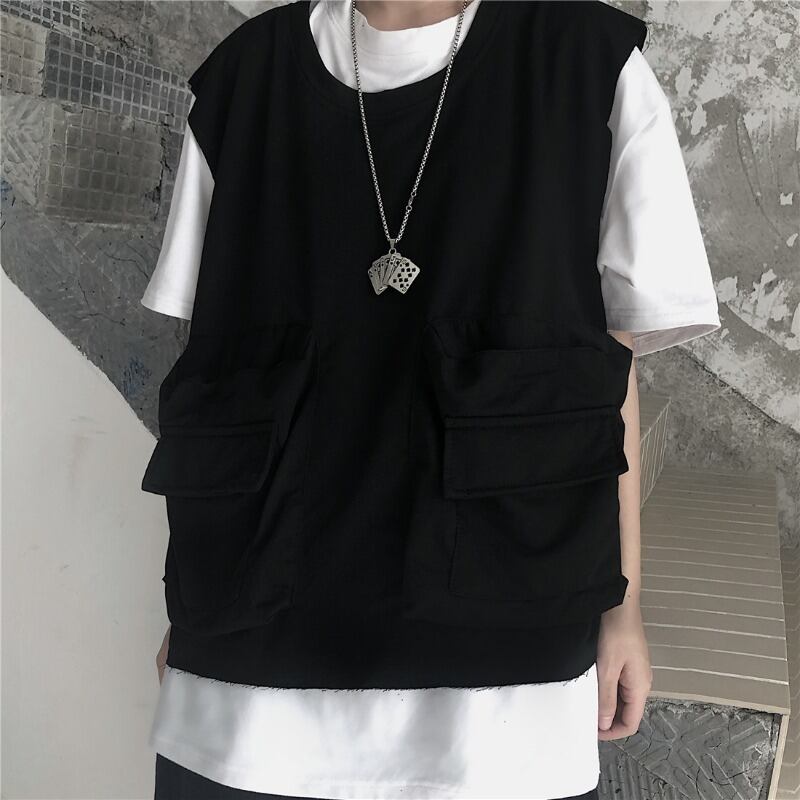ベスト女性初秋バージョンins黒アウターラウンドネックノースリーブトップ緩い学生ツーリングチョッキベスト潮 Brother_is_Style5488078
