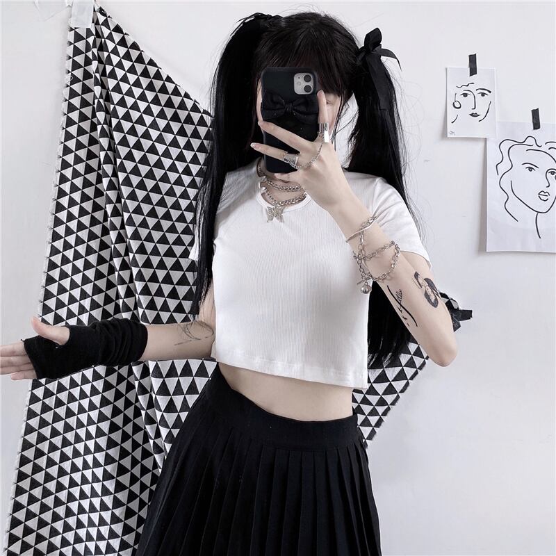 ショートトップレディース夏2020新しいバージョンins黒野生スリムバタフライチェーン半袖Tシャツトレンド Brother_is_Style5828906