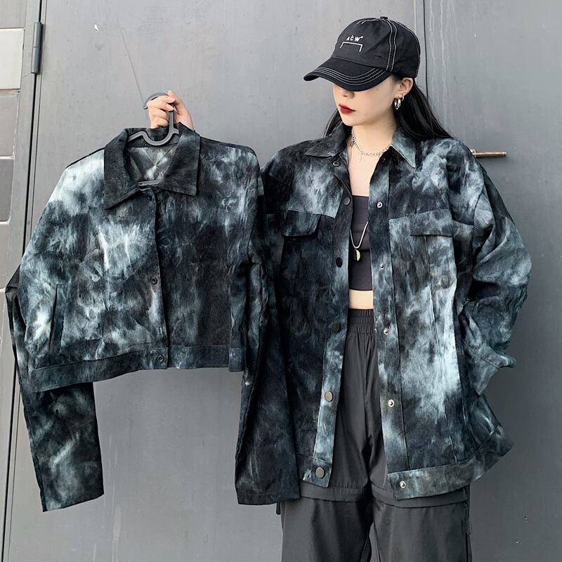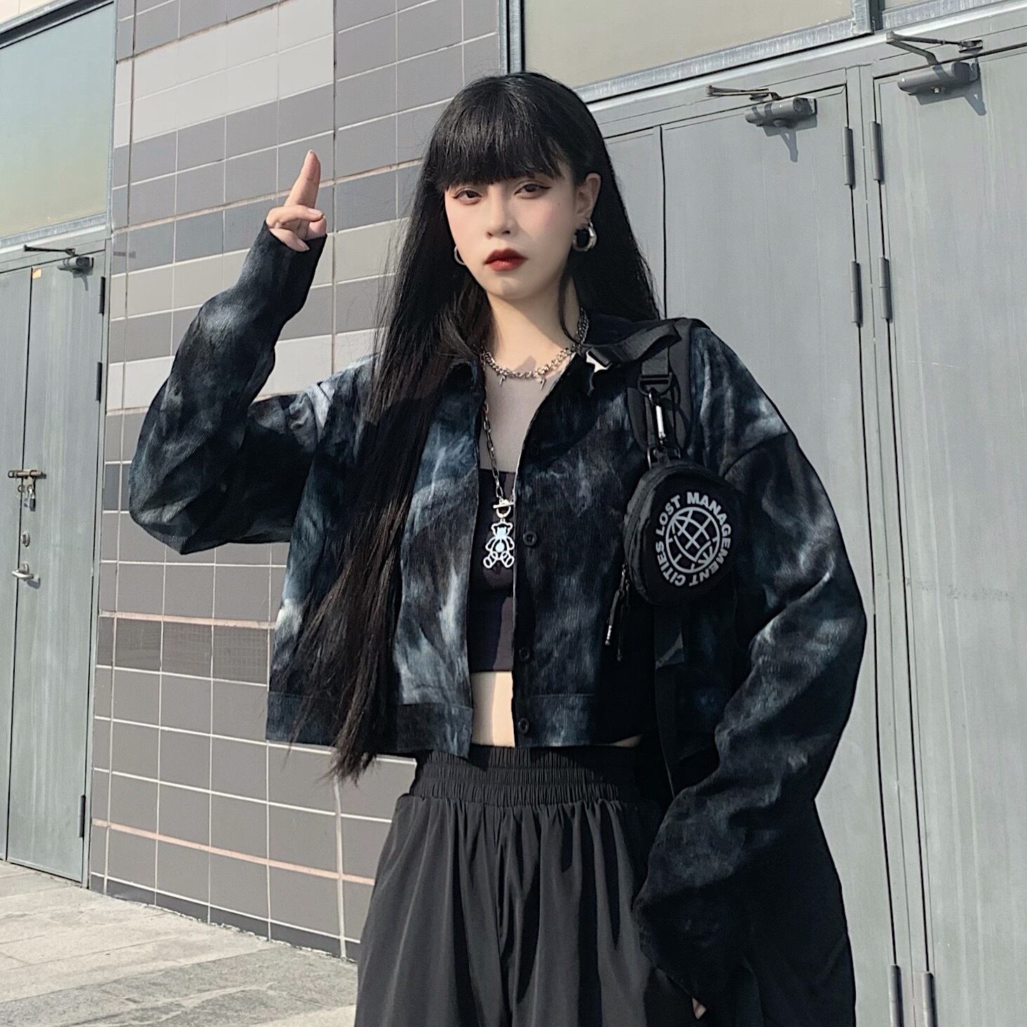 2020年秋の新バージョンinsタイダイコーデュロイクロップトップルーズで用途の広い長袖ジャケット女性のトレンド Brother_is_Style64843140053