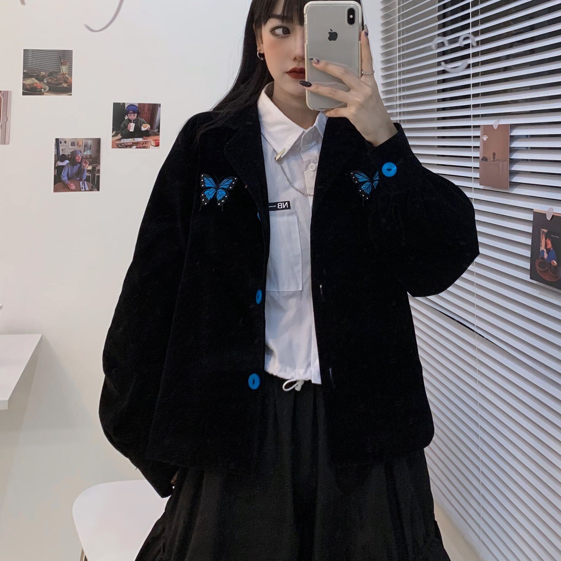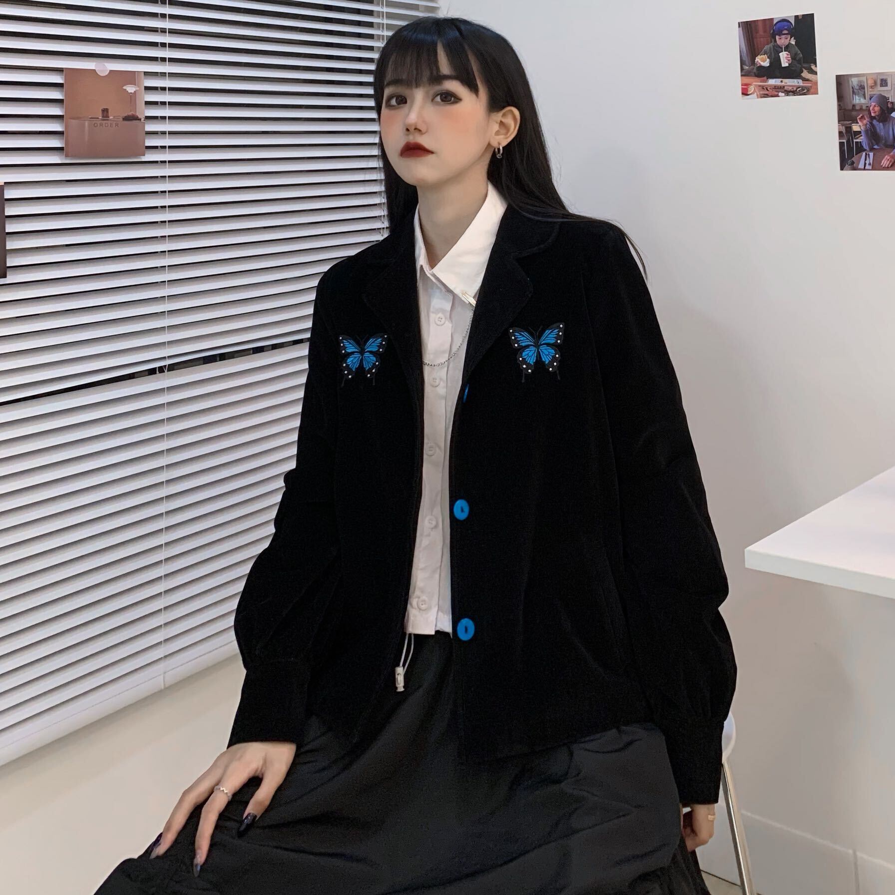初秋バージョンins原宿ポートスタイルのレトロな蝶の刺繍トップbf黒の薄いセクション長袖ショートジャケット女性の潮 Brother_is_Style5041516