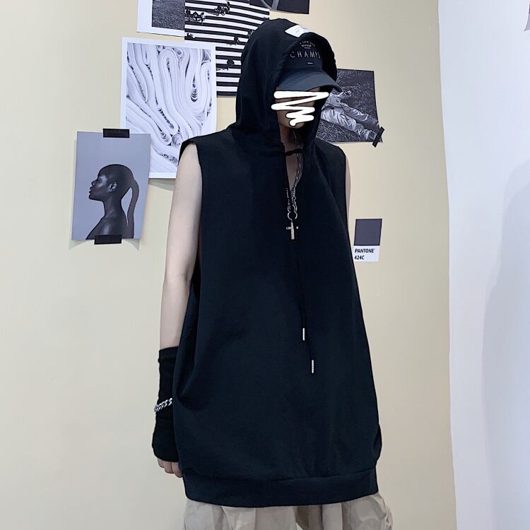 黒のノースリーブトップ女性2020新しい夏バージョンイン緩い野生のフード付きベストベスト愛好家の潮 Brother_is_Style0712069