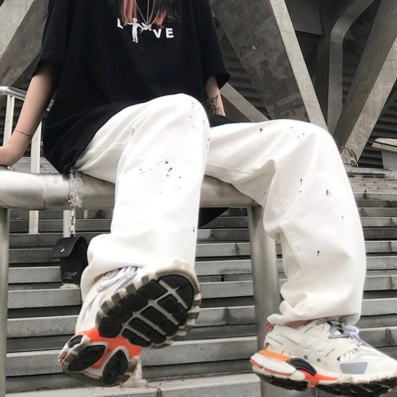 パンツ カラージーンズ ルーズホワイトハイウェストウェストワイドレッグ ワイドパンツ Brother_is_Style4973682