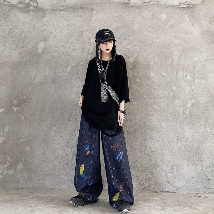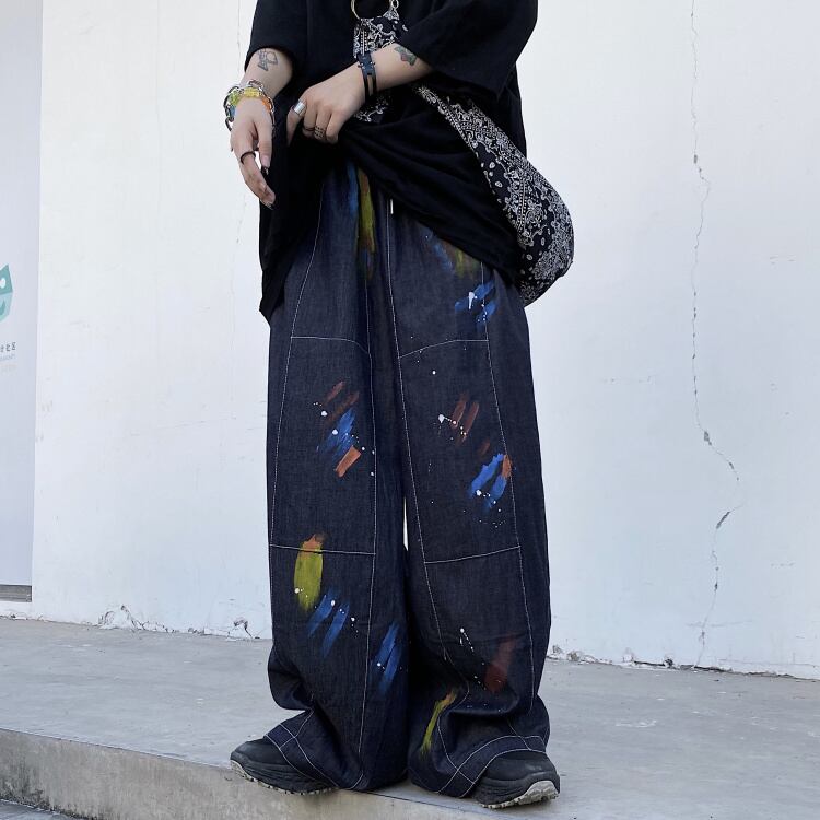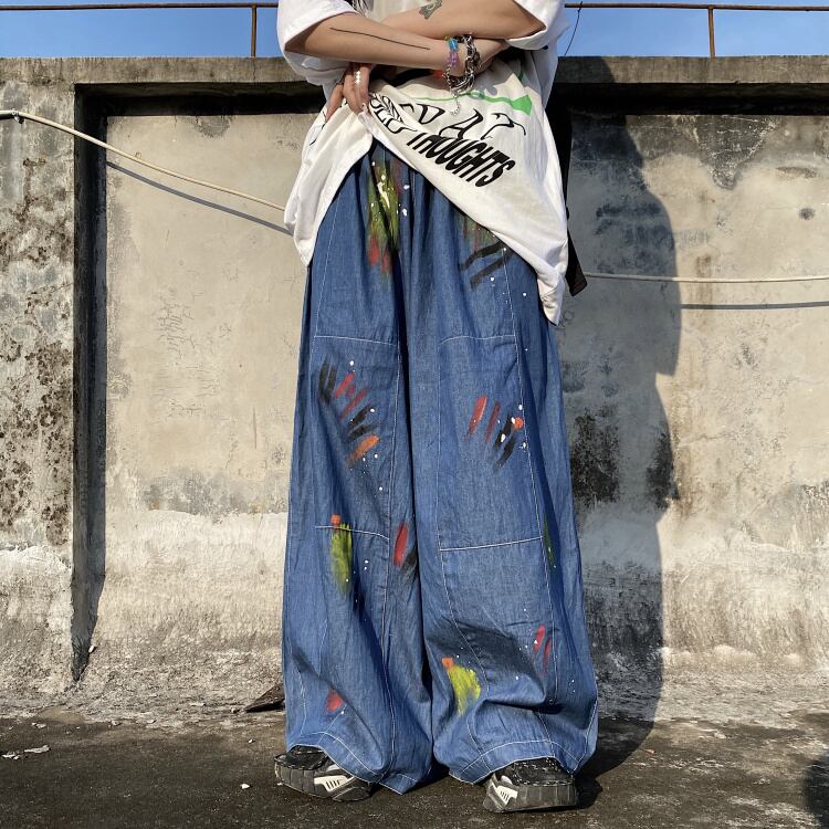ジーンズ女性版insストリートグラフィティパパパンツゆったりヒップホップワイルドストレートワイドレッグパンツトレンド Brother_is_Style91825386395