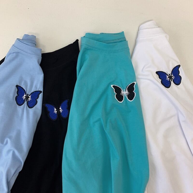 2020年の女性の新しい初秋のins蝶の刺繍ネット赤のカップルのトップ緩い学生長袖Tシャツのトレンド Brother_is_Style2934419