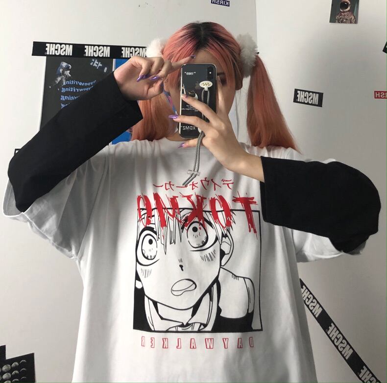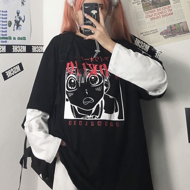 2020年の女性の新しい秋バージョンins ese漫画プリントトップルーズフェイクツーピース長袖Tシャツトレンド Brother_is_Style97051179942