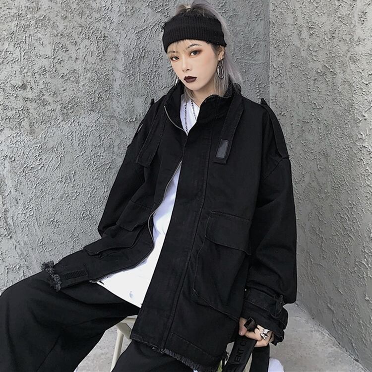 秋のins香港風ステッチングツーリングジャケットルーズBFワイルドフードレスブラックトップコートの男性と女性 Brother_is_Style4572852