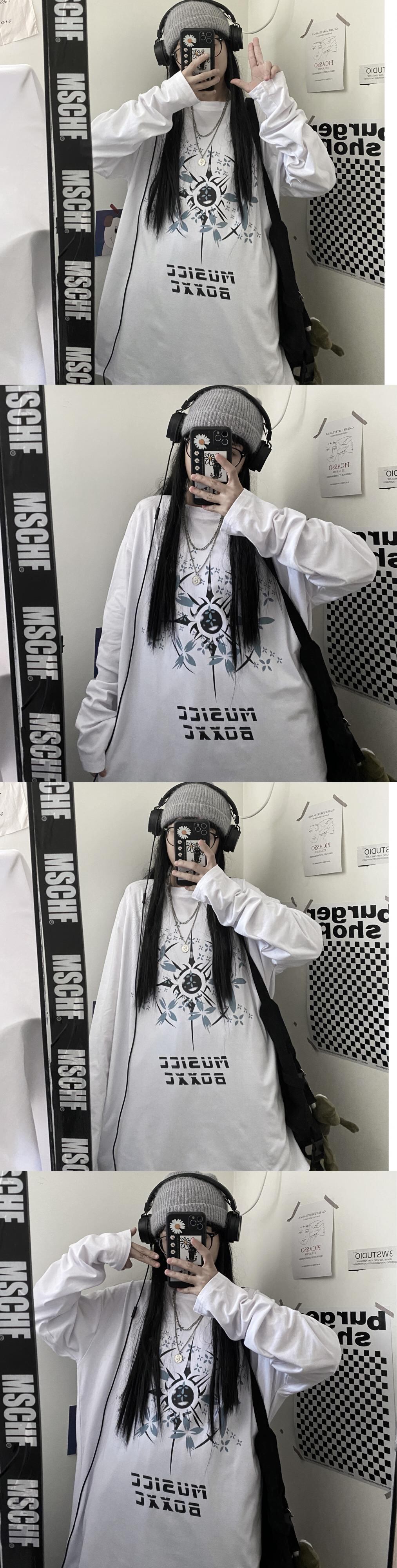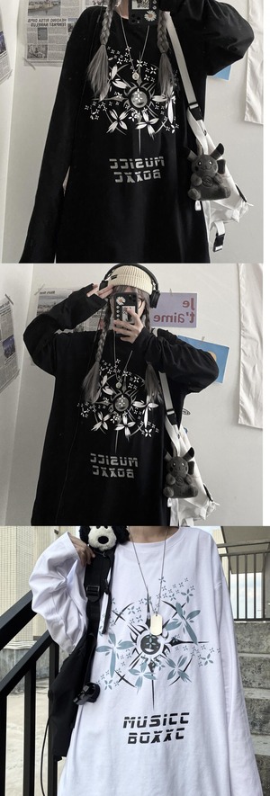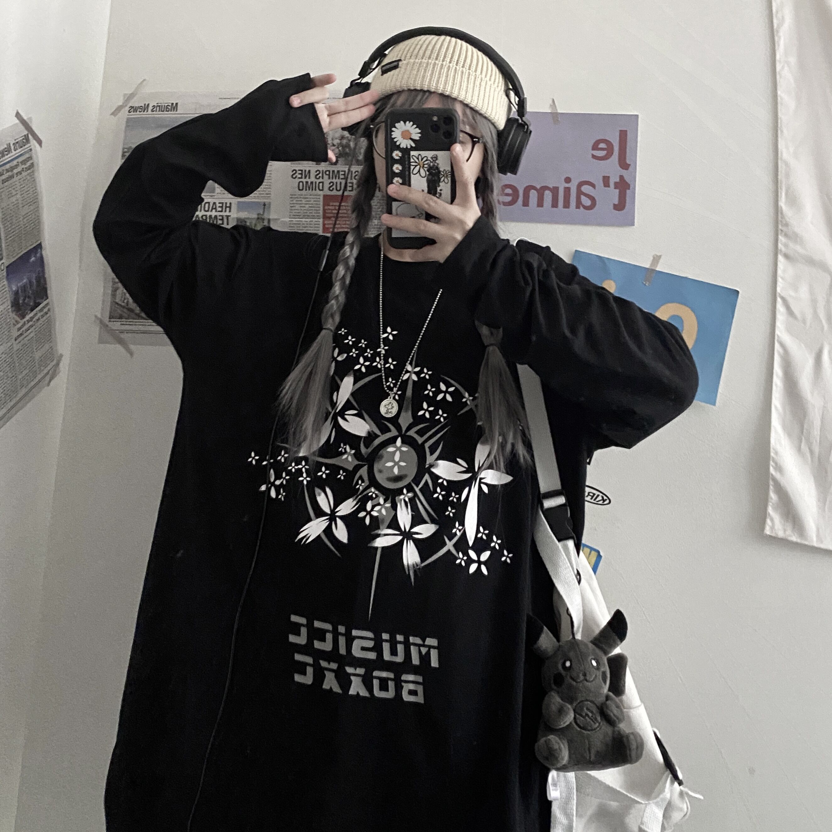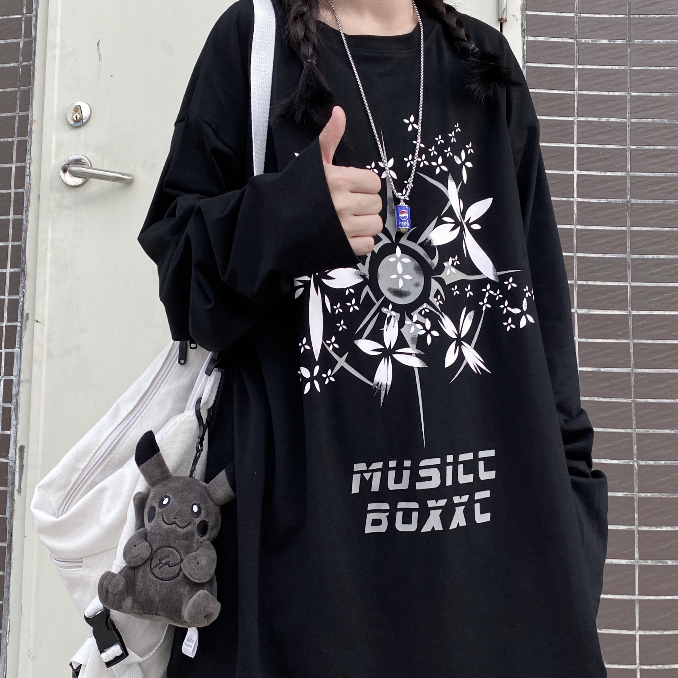 秋の婦人服2020新バージョンins原宿風ダークプリント長袖Tシャツルーズボトムストップトレンド Brother_is_Style26490662147