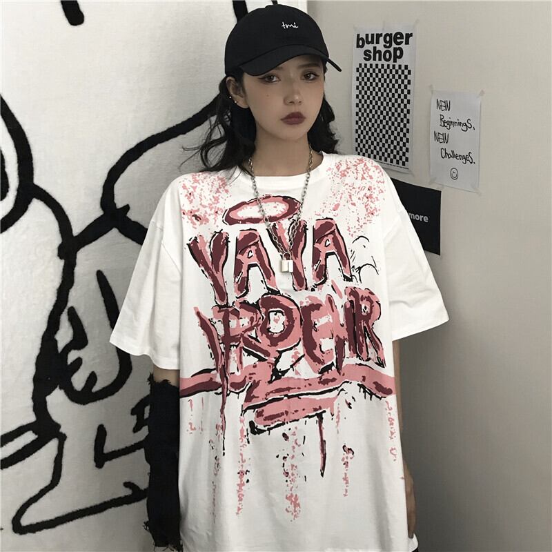 2020年夏新作イン原宿風ダークレタープリントトップスゆるいワイルド半袖Tシャツレディーストレンド Brother_is_Style3823381