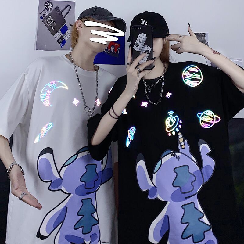 2020年夏の新しいinsネット赤反射漫画半袖トップス緩い白い半袖Tシャツの男性と女性 Brother_is_Style5282907