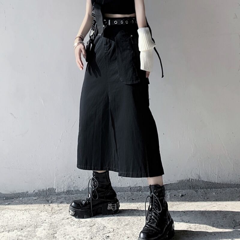 スカートレディース2020新しい夏バージョンインスウィンドブラックハイウエストツーリングスカートルーズミドル丈スカートトレンド Brother_is_Style9853178