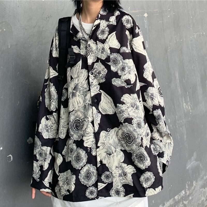 シャツ女性の秋バージョンinsレトロ花柄スクエアカラートップス緩い野生カジュアル長袖シャツジャケット潮 Brother_is_Style2142746