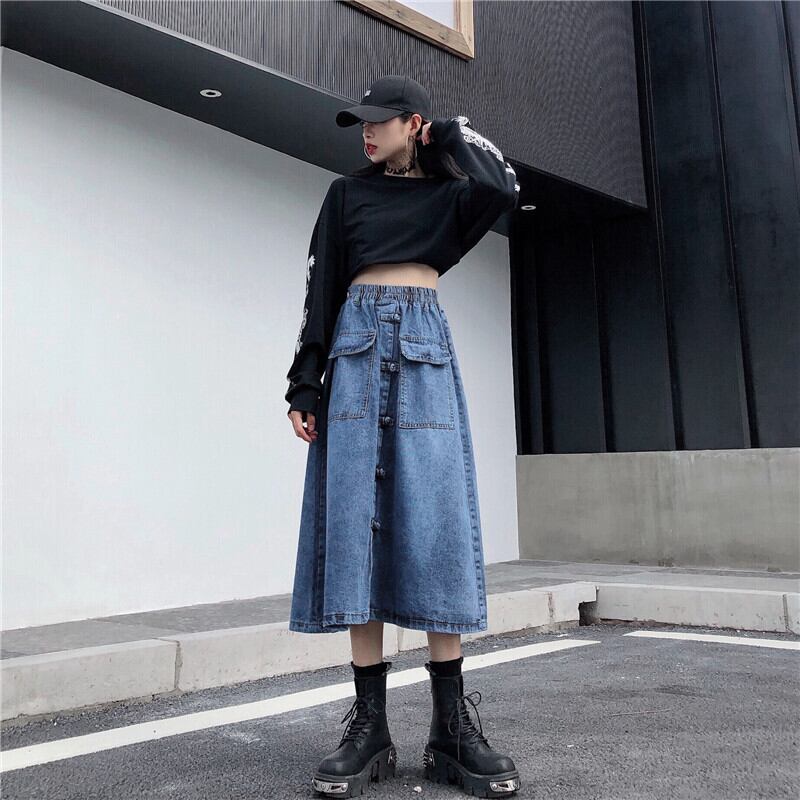スカートレディース2020新バージョンインスレトロウォッシュデニムスカートゆったり学生ミドル丈Aラインスカートトレンド Brother_is_Style5930944