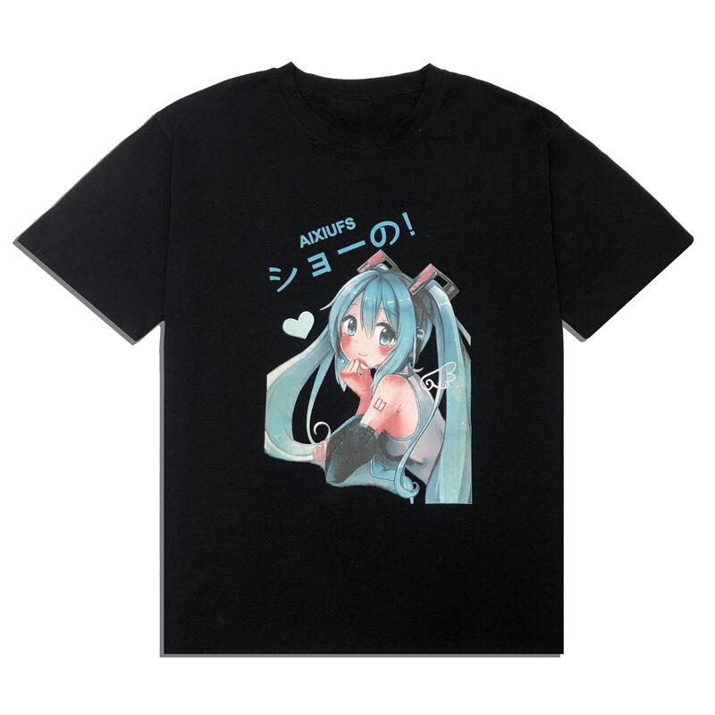 2020夏新作版原宿エセ二次元プリント黒トップスゆったり半袖Tシャツ女性トレンド Brother_is_Style6180767