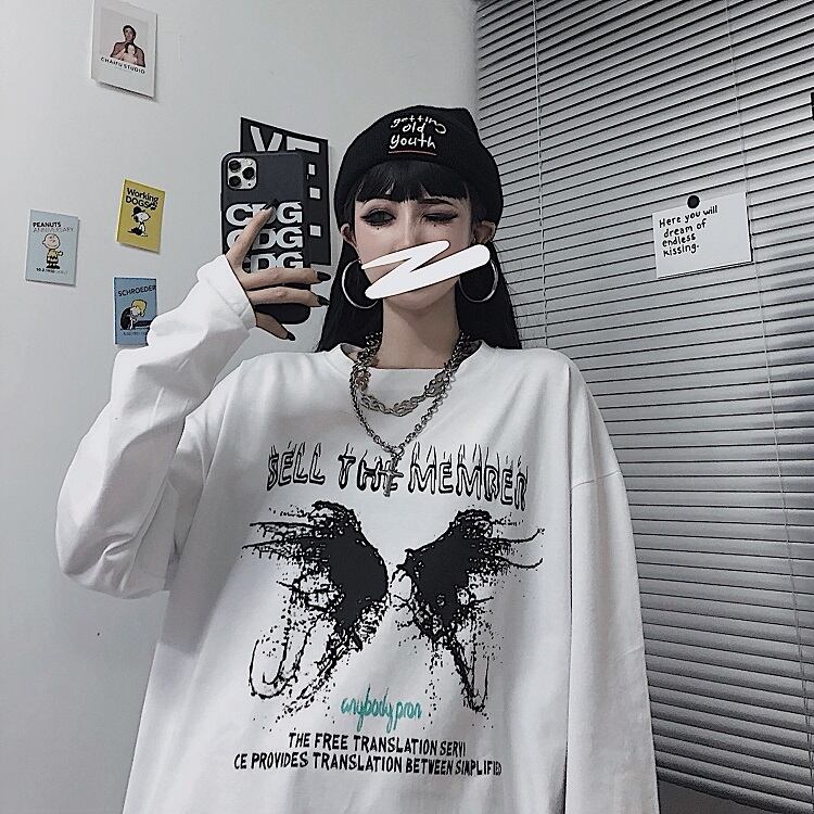 2020初秋新作ins原宿ダークバタフライプリント長袖Tシャツルーズホワイトトップス男女兼用トレンド Brother_is_Style1331804
