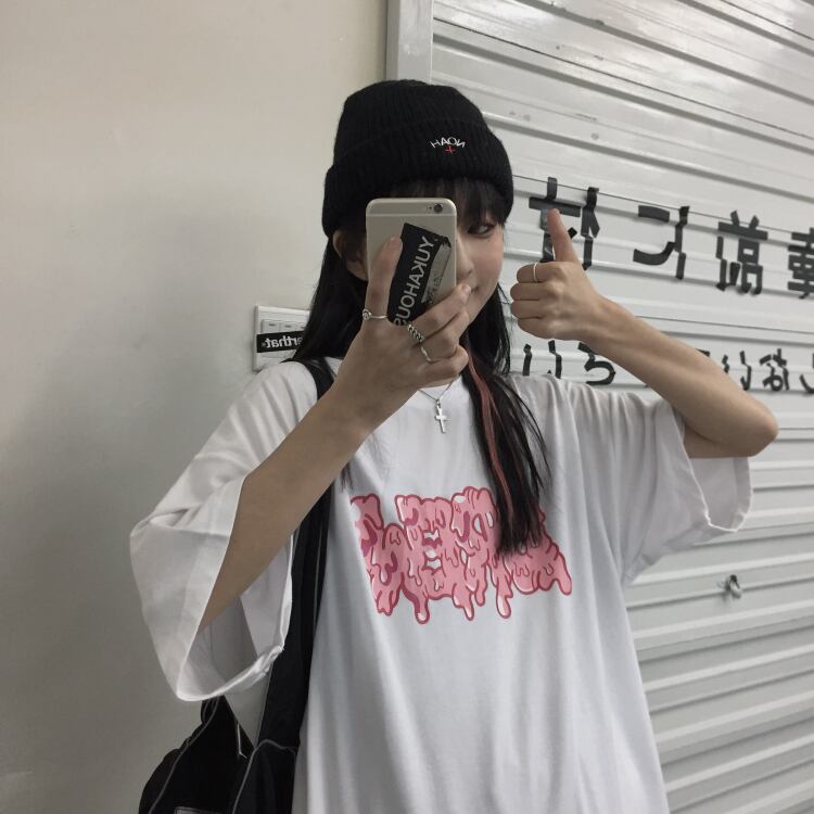 サマースタンダードプリントホワイトトップス ルーズTシャツ レディース レトロ 夏物 Brother_is_Style1352734