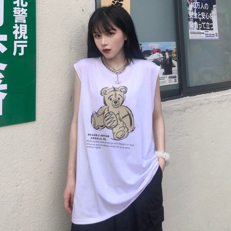 2020女性の新しい夏バージョンinsホワイトネットレッドノースリーブTシャツルーズで用途の広いアウターウェアベストトップトレンド Brother_is_Style7041669