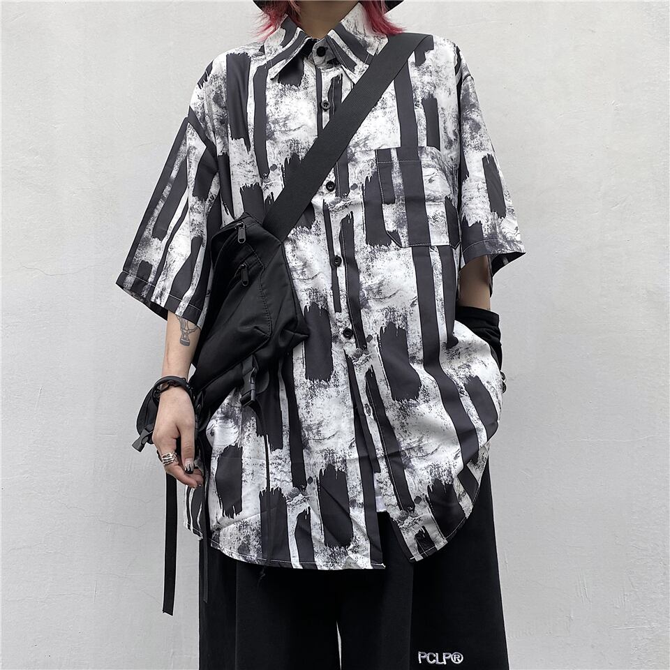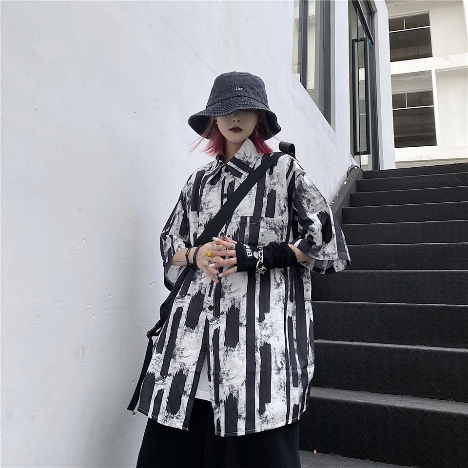 シャツレディース夏2020新しいバージョンインスストリートグラフィティプリントトップルーズカジュアルショートスリーブシャツトレンド Brother_is_Style9576675