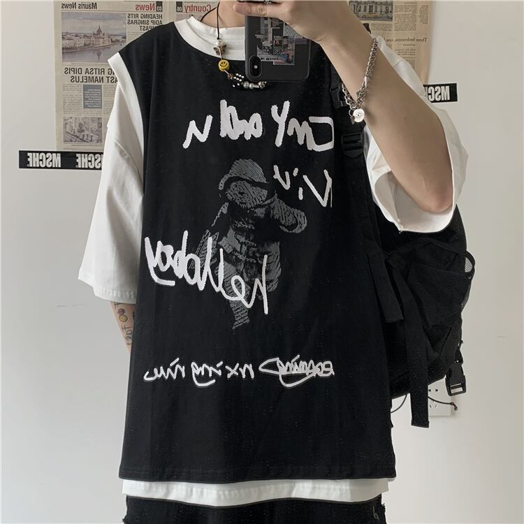 サマースタイルノースリーブTシャツ ルーズブラックトップス 夏物 Brother_is_Style8858775