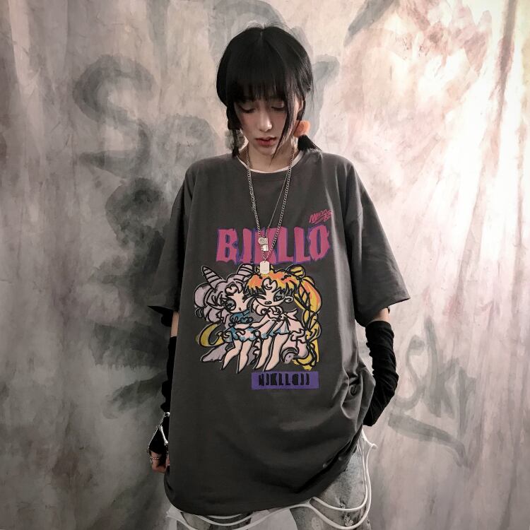 半袖Tシャツ女性2020新しい夏のインスタイルの漫画のプリントピンクの半袖トップス緩い学生のトレンド Brother_is_Style7179528